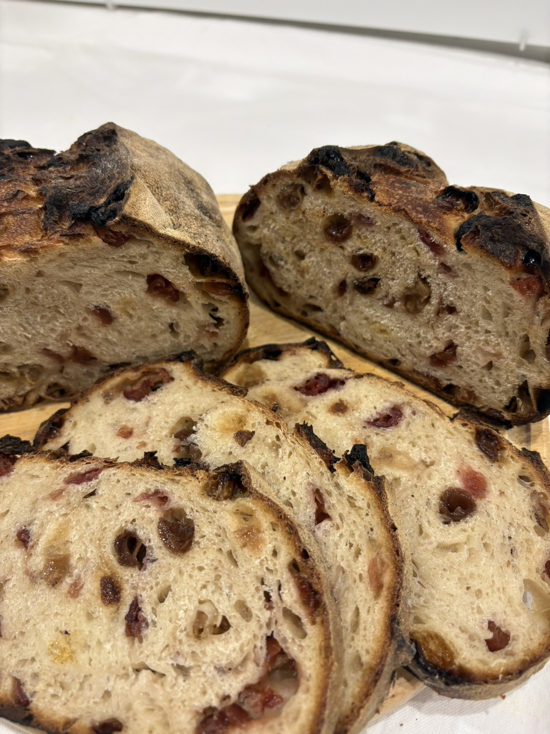 ブロンの生地にドライいちじくをたっぷり混ぜ込んで焼き上げました。 生地のモチモチ感と、ドライいちじくのプッチプチな歯ごたえ、優しい甘さから生まれる味の一体感が何とも言えない美味しさです。 そのまま食べても美味しいですが、薄くスライスし強めにトーストしていただくのもオススメです。 生地量:1㎏ 原材料:埼玉県産小麦粉 北海道産小麦粉 サワードウ ドライいちじく 国産天日塩 《アレルギーに関する表示:小麦》 |